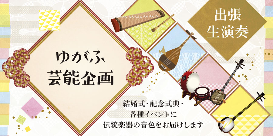 首都圏または沖縄を中心に、沖縄三線、三味線、笛、太鼓、尺八、琵琶といった伝統楽器の演奏者を派遣いたします。結婚式、式典、地域イベント、福祉施設、保育園・幼稚園・学校、プライベートパーティー等、さまざまな場面にご用命ください。